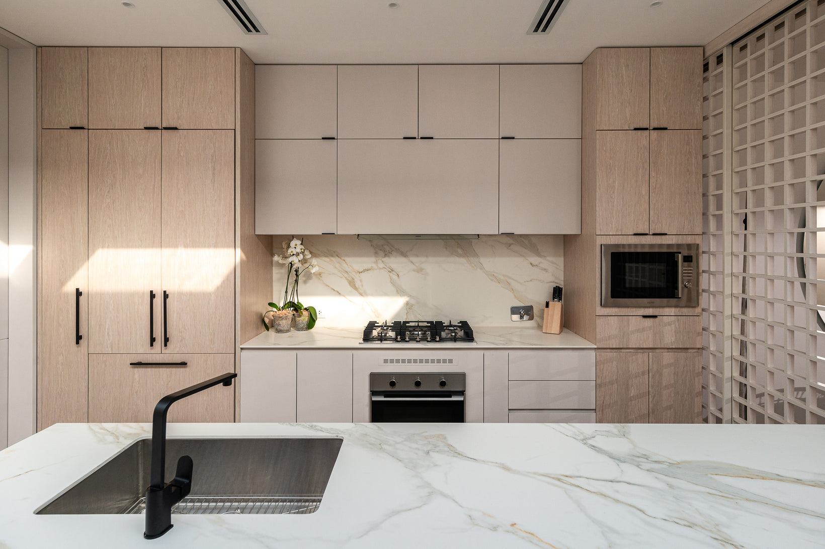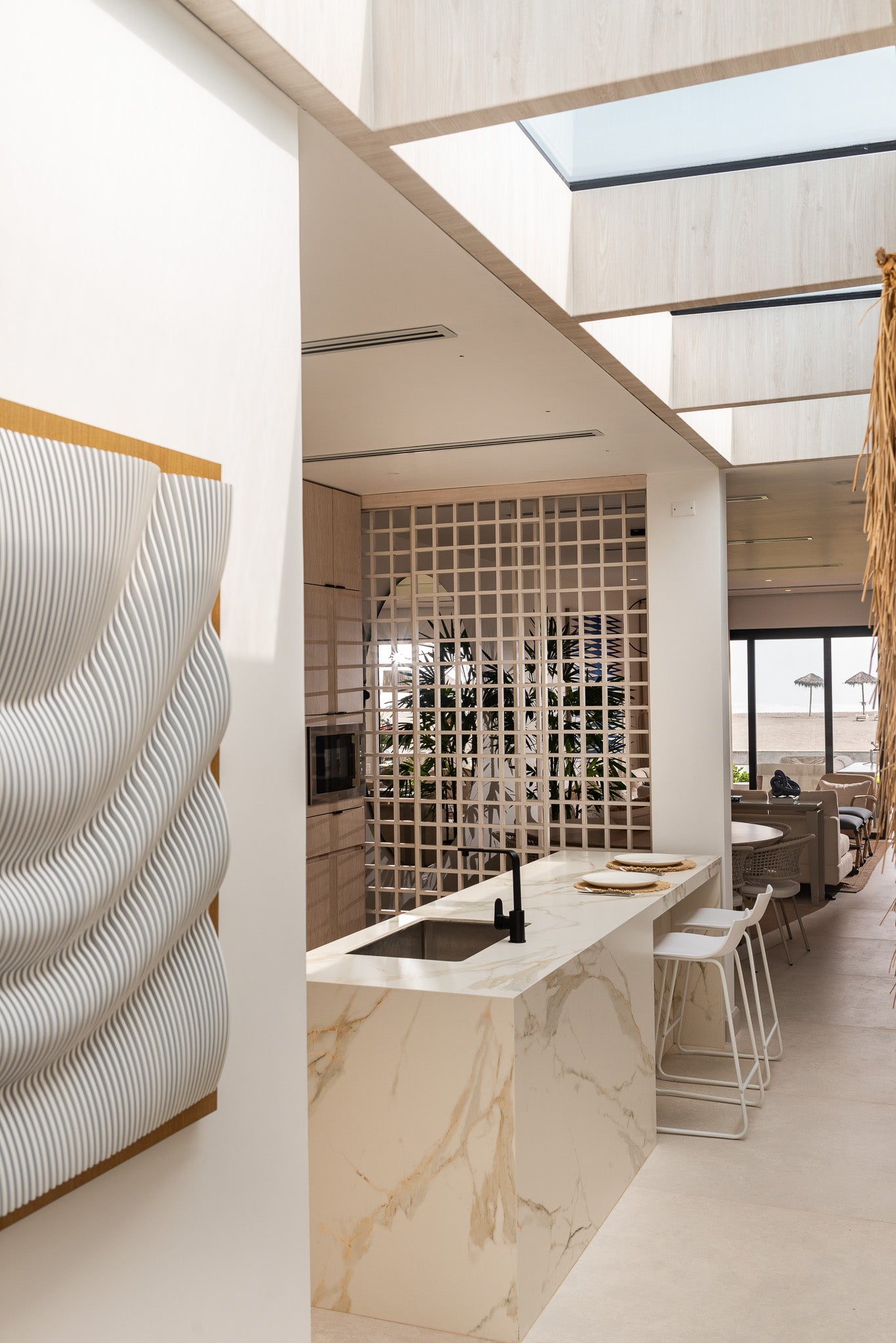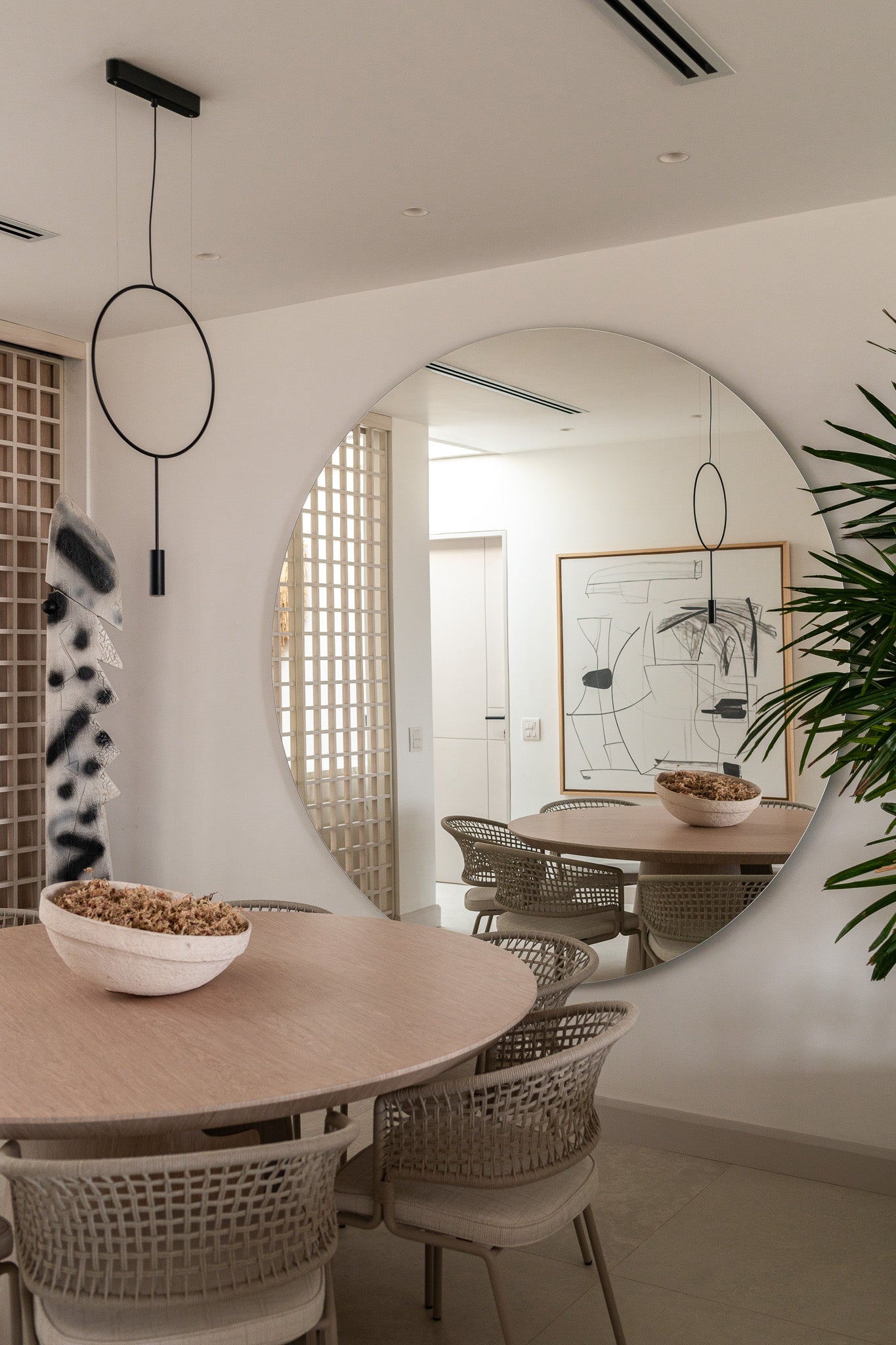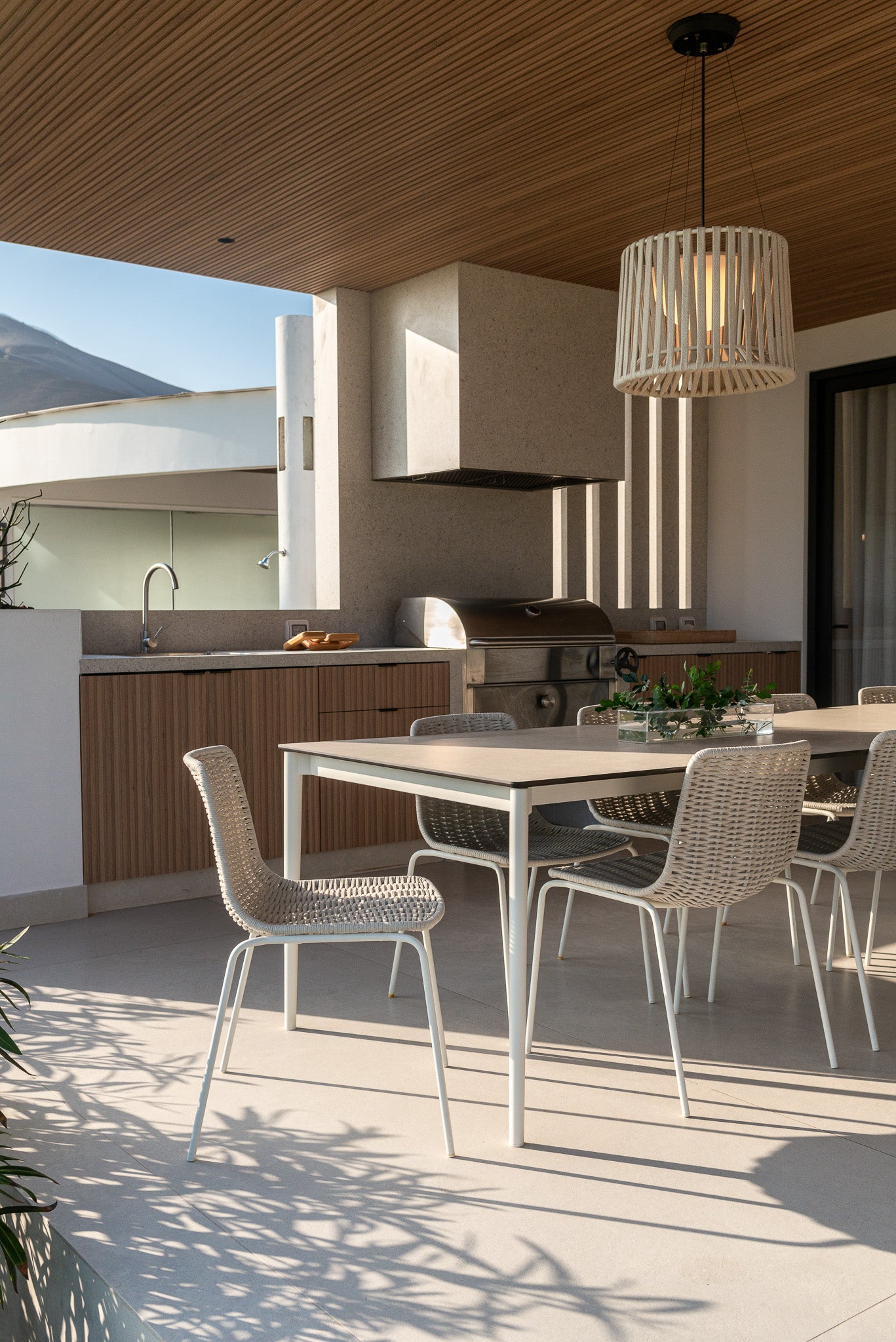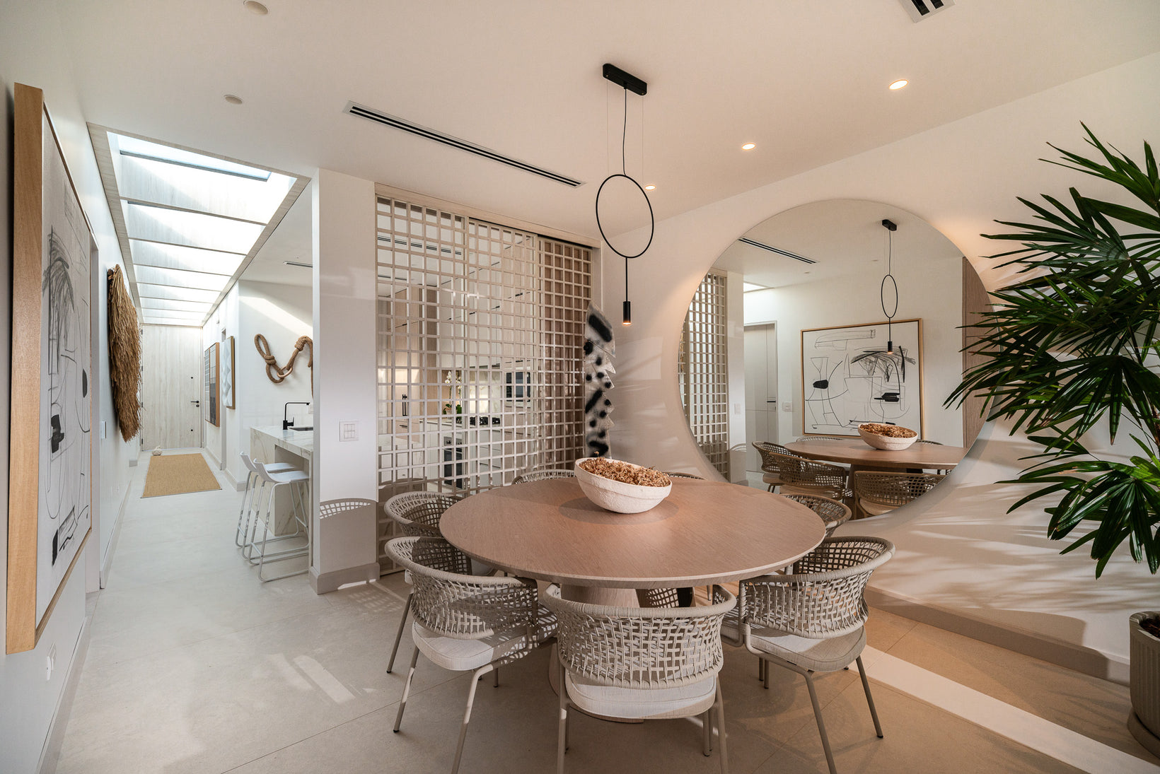 La cocina y el comedor se integran, usando materiales nobles, mobiliario de líneas limpias y una paleta que potencia la luz natural. Un espacio pensado para reunirse, disfrutar y vivir el diseño desde lo cotidiano.
