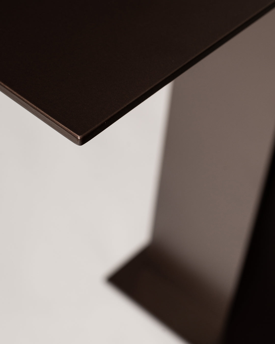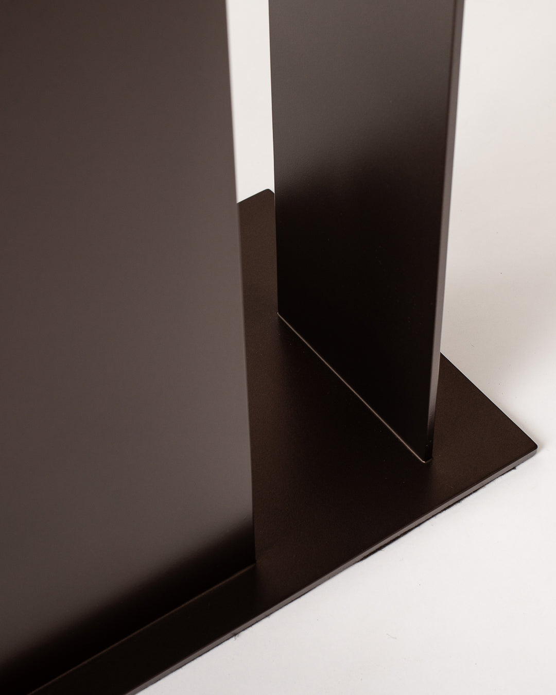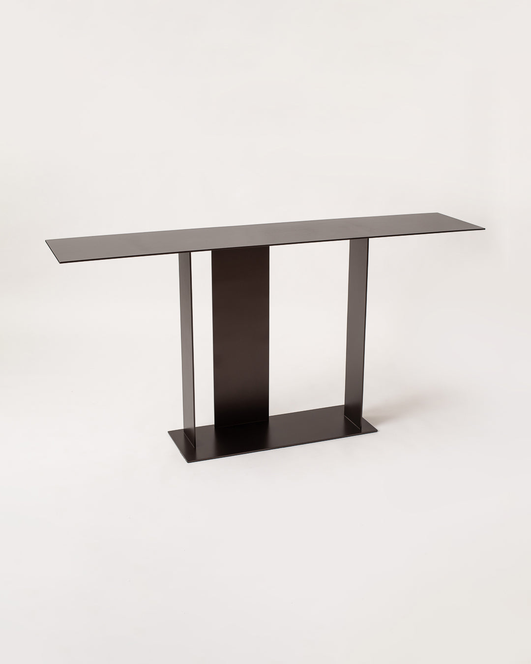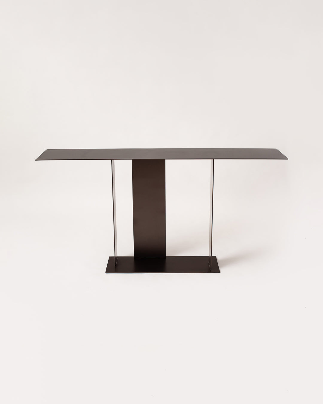 Diseño puro, ligero y estructural. La consola Bardi está fabricada completamente en metal, con un acabado borgoña oscuro que le da profundidad y sofisticación.