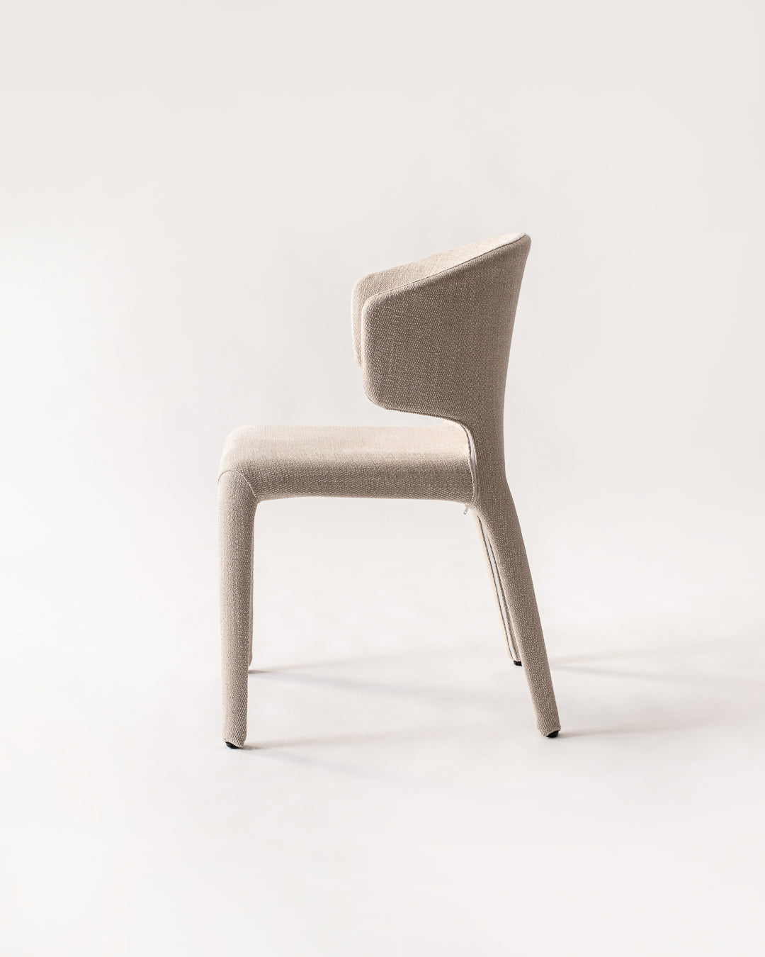 Su tapizado en tweed tejido aporta textura y modernidad, mientras que su estructura delgada y elegante realza la armonía del espacio. Ideal para elevar cualquier comedor con el sello distintivo del diseño italiano.