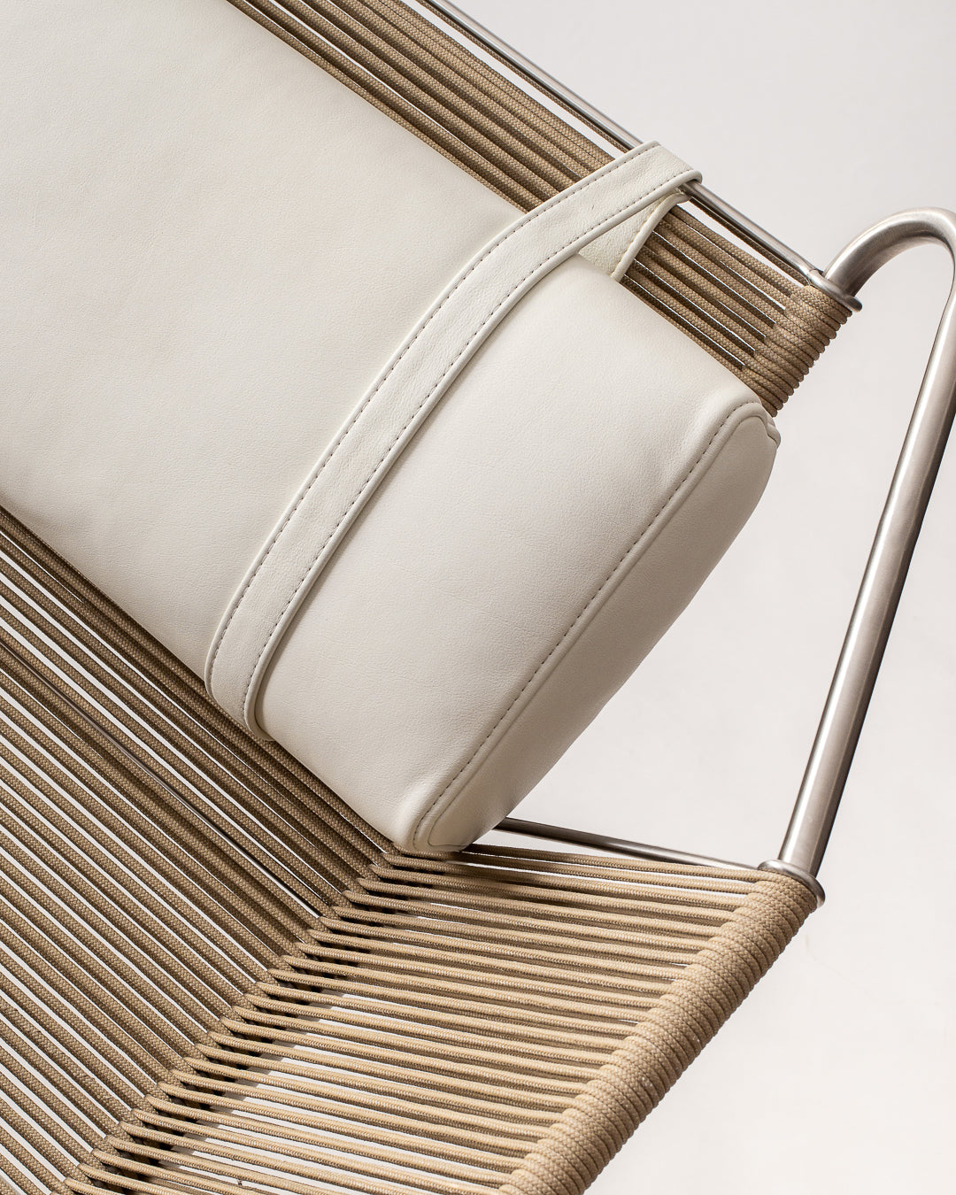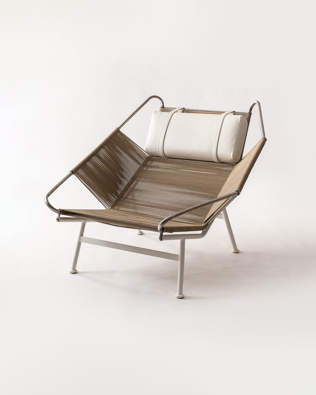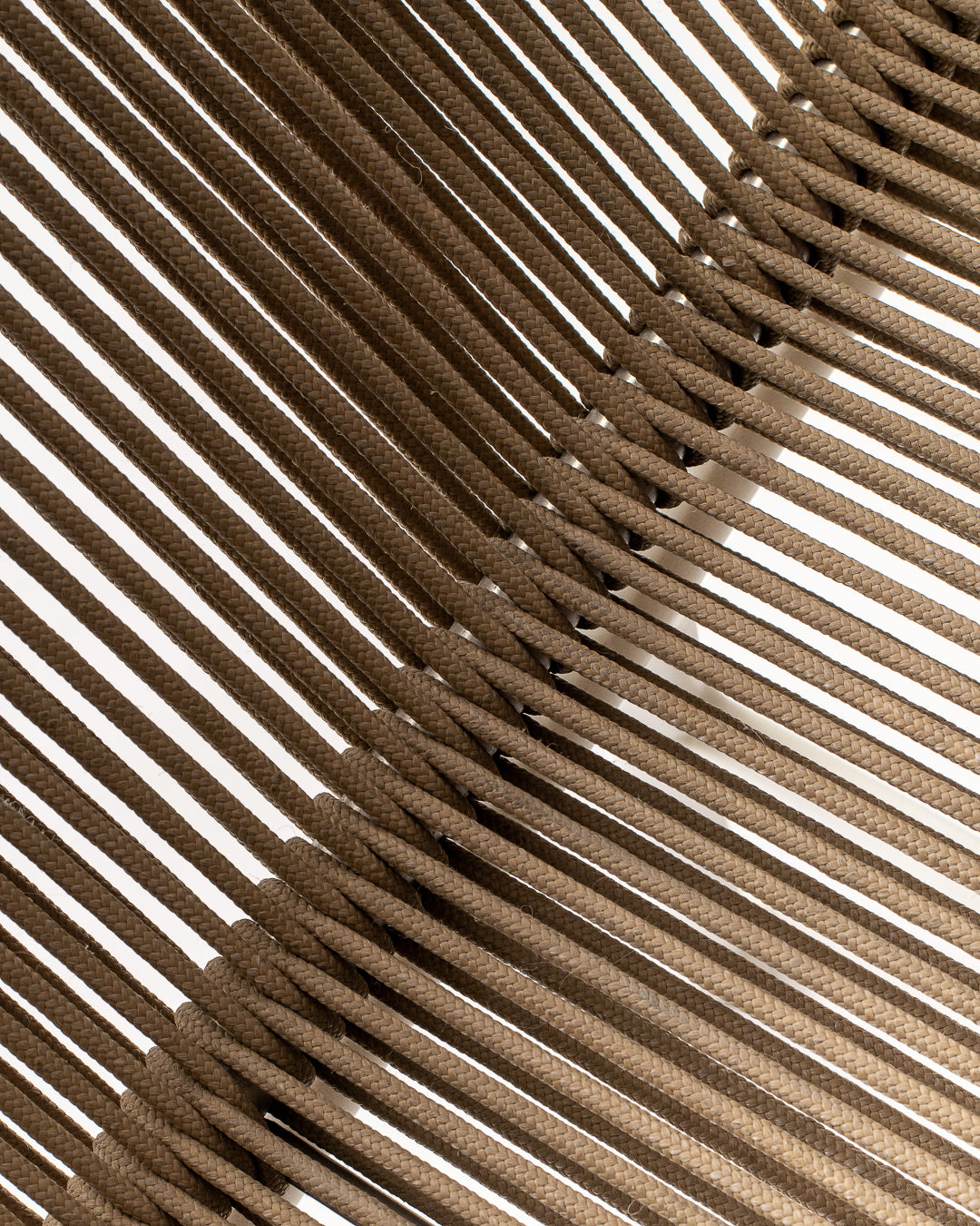 Su diseño amplio y acogedor destaca por su estructura tejida en cuerdas de alta resistencia, que envuelven visualmente y aportan textura, calidez y sofisticación.