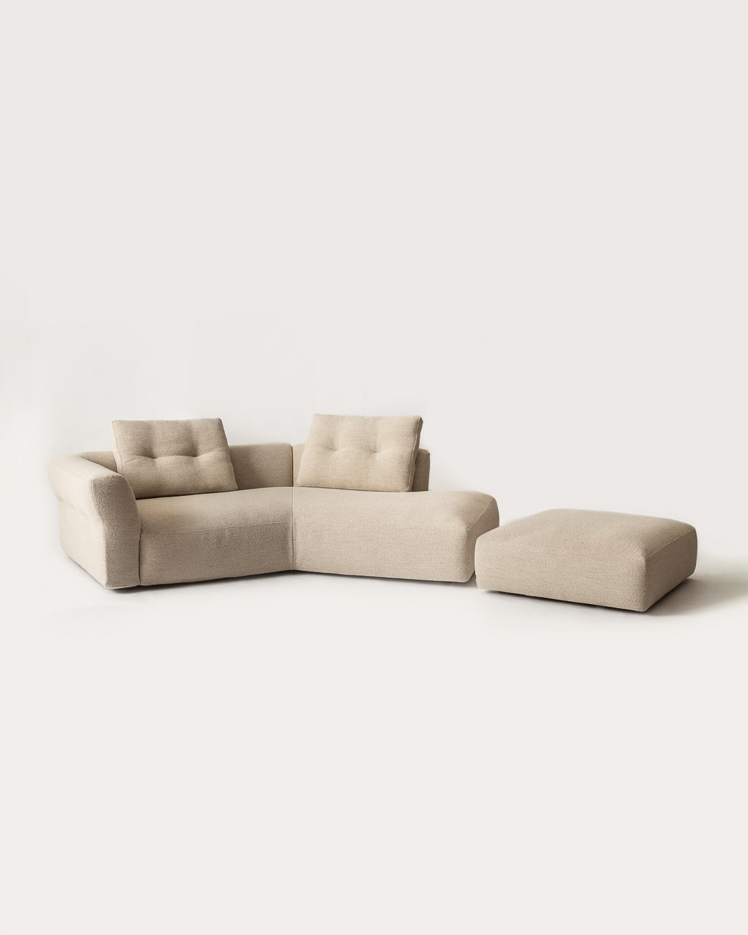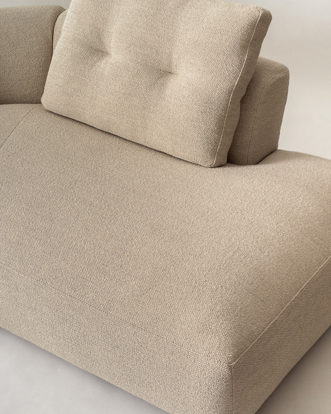 Su silueta baja y generosa invita al descanso, mientras que sus formas suaves aportan calidez visual y equilibrio arquitectónico.